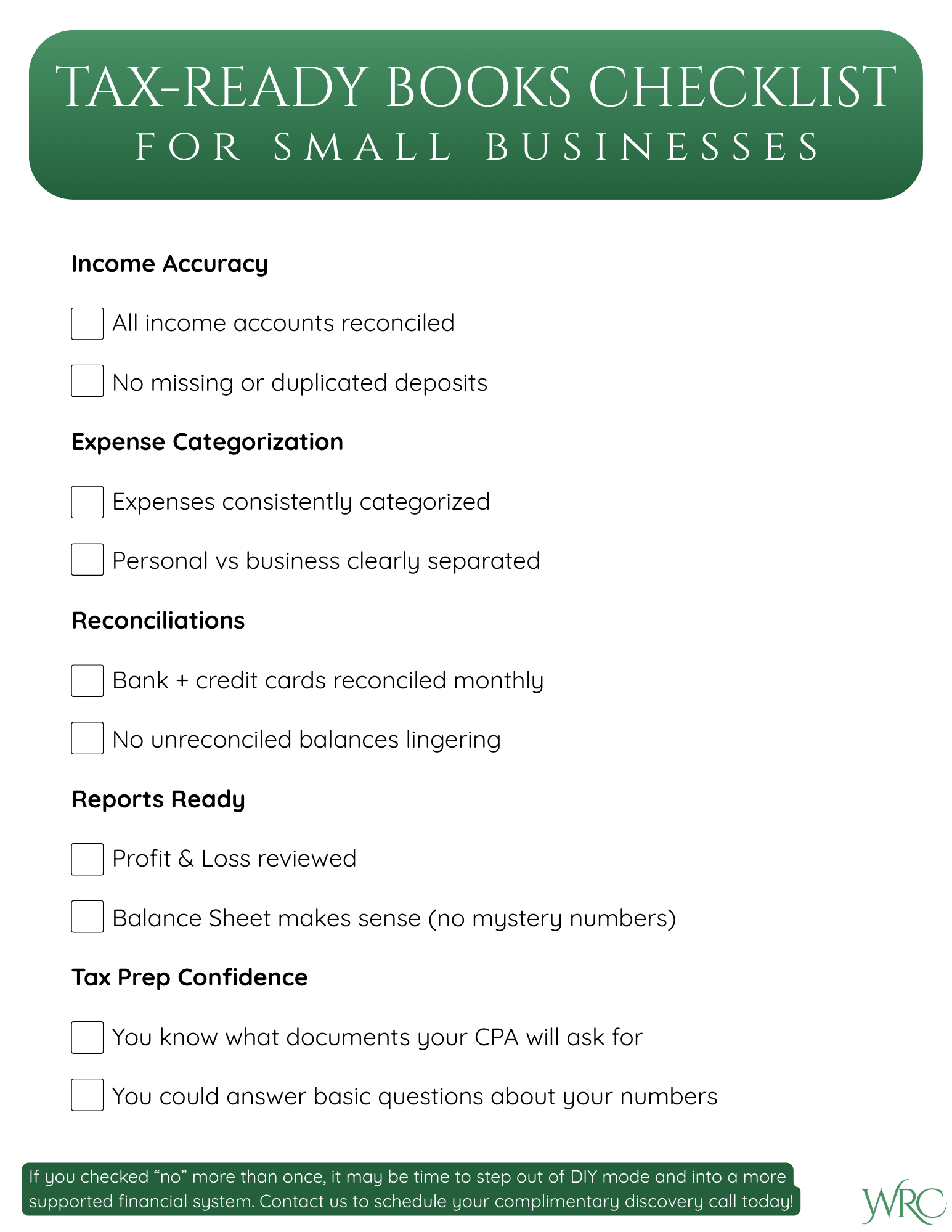 Western Reserve Consulting created a Tax-Ready Books Checklist to help business owners quickly identify gaps, risks, and opportunities for cleanup before they become costly.